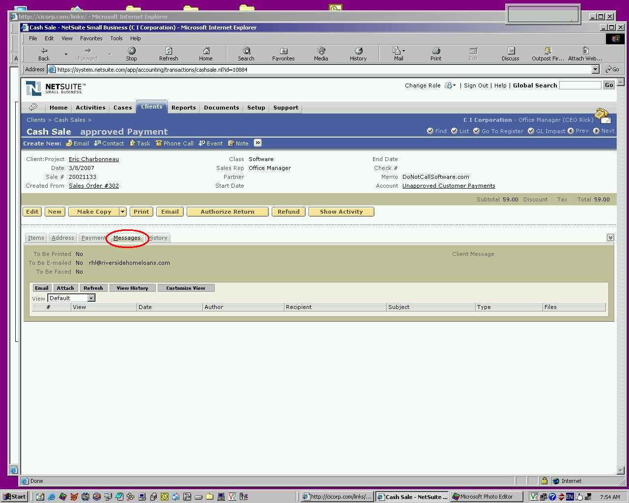 Approved Payment, then click Messages