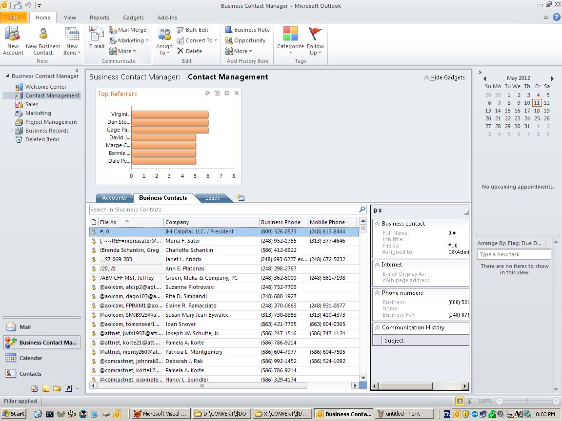 Before in Goldmine After in Outlook BCM