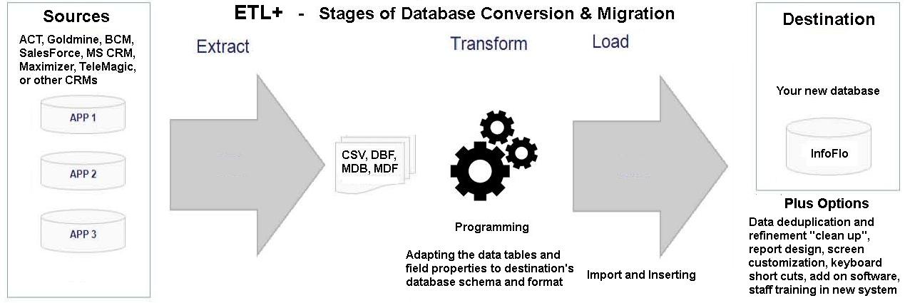 Extract the data from the source system you are converting from Transform the data into the format that the destination software requires Load the data into the destination system